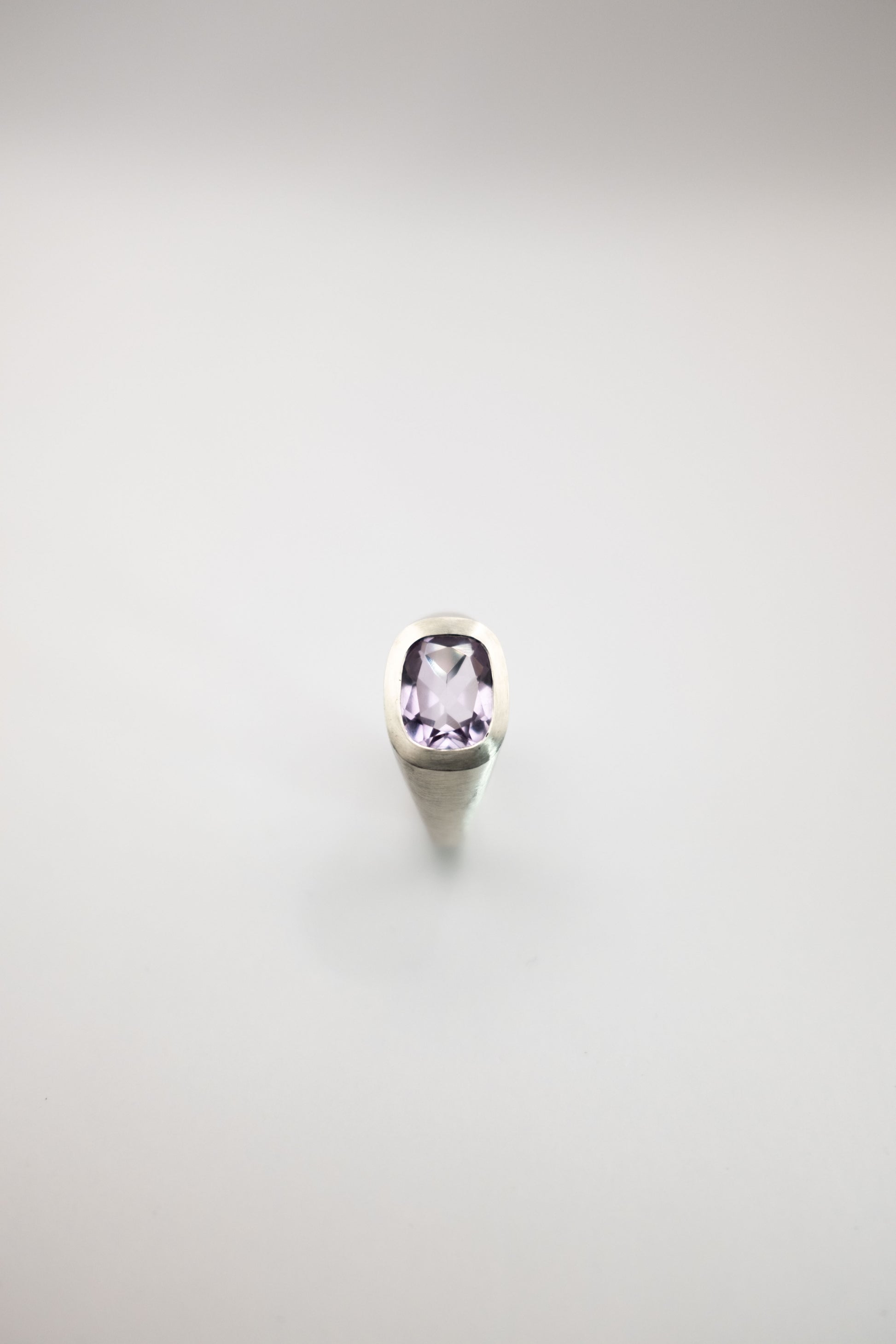 A refined statement ring centered around a pink amethyst. Matte finish. Alternative gemstones are available upon request.